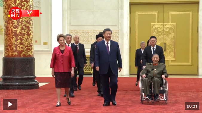 習近平指出,75年來,世界上有很多與中國人民志同道合、風雨同舟的老朋友、好朋友,今天被授予“友誼勛章”的迪爾瑪·羅塞芙女士就是其中的杰出代表。中國人民永遠不會忘記那些為中國發(fā)展、增進中國人民同各國人民友誼作出突出貢獻的國際友人。中國人民愿攜手世界各國人民,維護世界和平,促進共同發(fā)展,推動構建人類命運共同體,開創(chuàng)人類更加美好的未來。