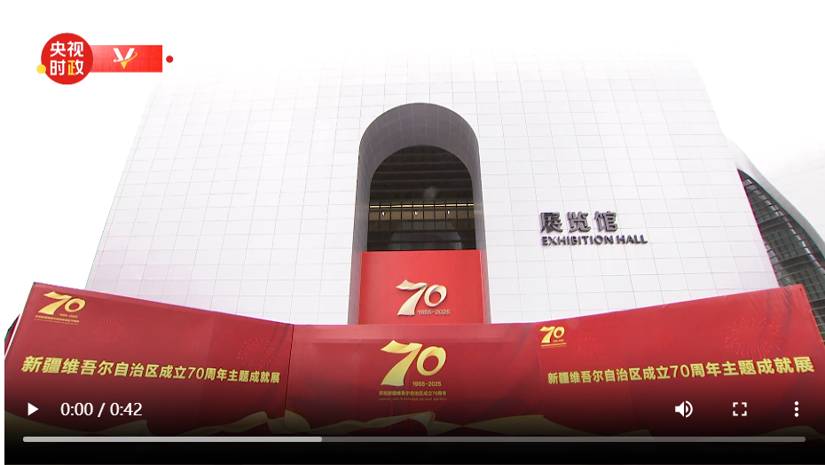 上午10時(shí)30分許,習(xí)近平等來(lái)到烏魯木齊文化中心展覽館,走進(jìn)展廳參觀成就展。展覽通過(guò)“萬(wàn)方樂奏換新天”“潮涌天山展宏圖”“美麗新疆鑄輝煌”3個(gè)部分,全景展現(xiàn)了70年來(lái)在中國(guó)共產(chǎn)黨堅(jiān)強(qiáng)領(lǐng)導(dǎo)下、在全國(guó)各地大力支援下,新疆各族人民團(tuán)結(jié)一心、艱苦奮斗、頑強(qiáng)拼搏取得的輝煌成就。