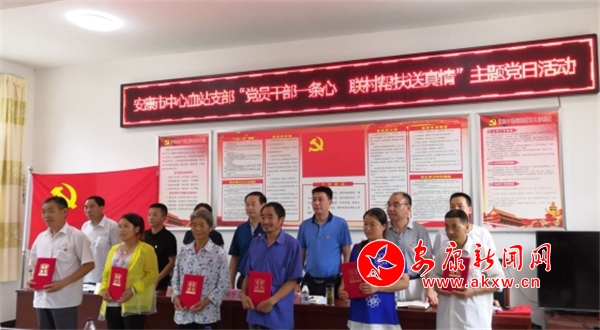 安康新聞網(wǎng)訊(通訊員 胡崇愛)在紀(jì)念建黨97周年之際,安康市中心血站黨支部舉行一次特別的黨日活動,即前往聯(lián)村幫扶地點麻坪鎮(zhèn)老莊溝村開展“黨員干部一條心,聯(lián)村幫扶送真情”主題黨日活動,表彰優(yōu)秀黨員及道德模范,進(jìn)行黨課講解宣傳教育。這次活動既特別,又非常有意義。