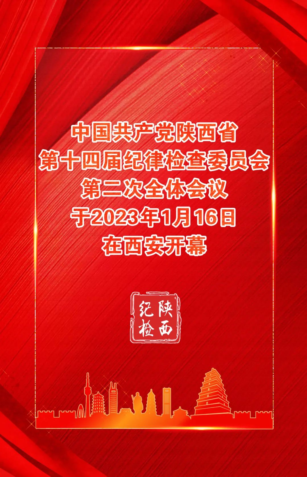 中國共產(chǎn)黨陜西省第十四屆紀(jì)律檢查委員會(huì)第二次全體會(huì)議于2023年1月16日在西安開幕