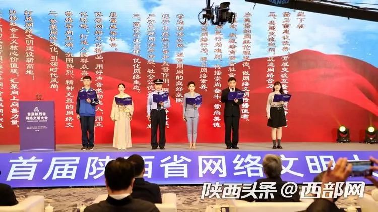 5月30日,首屆陜西省網(wǎng)絡(luò)文明大會在渭南召開。會上,陜西好青年代表、陜西省崗位學(xué)雷鋒標(biāo)兵李甜甜,中國好人、全國向上向善好青年韓紅輝,陜西文旅推薦使者、陜西好網(wǎng)民馮佳晨,中國好人、陜西省道德模范曹金生,陜西好網(wǎng)民代表、西安電子科技大學(xué)學(xué)生王冠玉,渭南市瑞泉中學(xué)學(xué)生云漢宸等共同發(fā)布《共建網(wǎng)絡(luò)文明倡議書》。