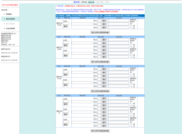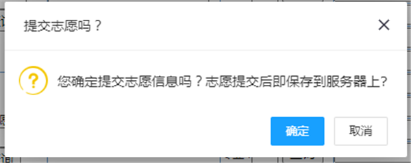 全部志愿信息輸入完畢后,必須點擊“提交”按鈕,否則服務器無法接收到志愿信息。全部志愿確定無誤后,必須點擊“確認”按鈕。在點擊“確認”按鈕之前,可以任意修改所填志愿。