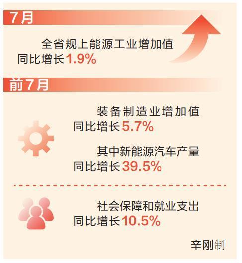 財政收支穩(wěn)定增長。前7月,全省一般公共預算收入2198.84億元,同比增長5.3%;一般公共預算支出4151.75億元,同比增長3.2%。其中,社會保障和就業(yè)支出同比增長10.5%,衛(wèi)生健康支出同比增長6.3%,節(jié)能環(huán)保支出同比增長4.3%。