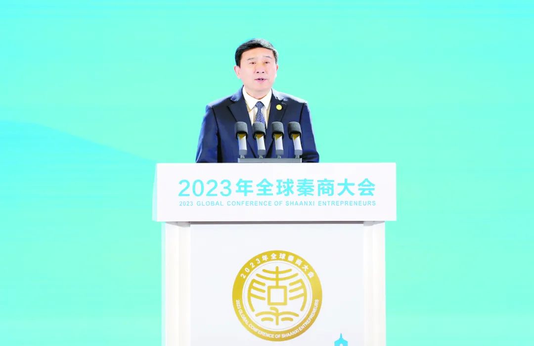 陜煤集團黨委書記、董事長張文琪在2023年全球秦商大會開幕式上發(fā)言。