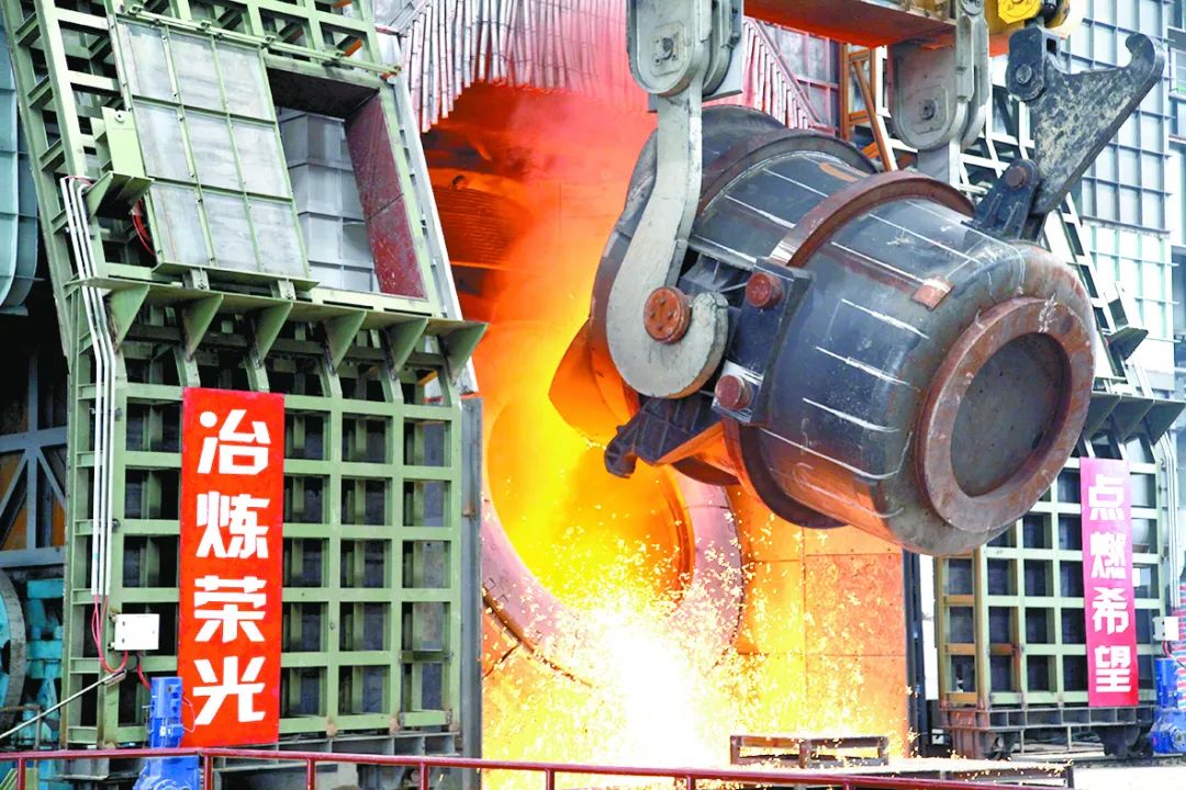 陜鋼集團漢鋼公司煉鋼廠轉爐車間生產現(xiàn)場。