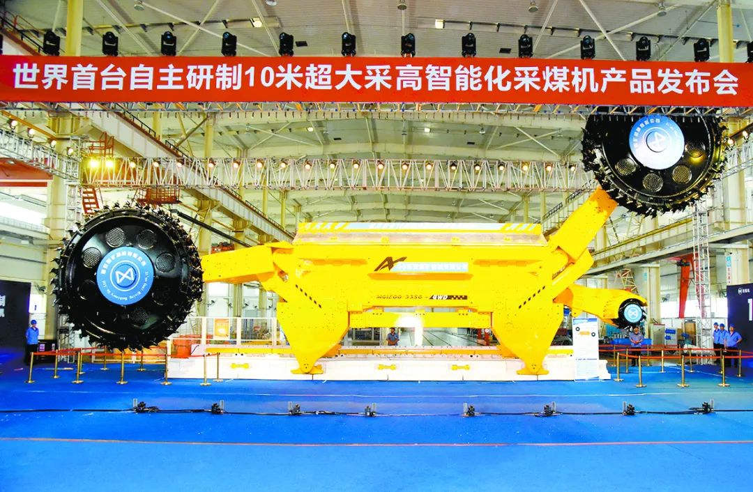 重裝集團西煤機公司推出自主研制世界首臺10米超大采高智能化采煤機。