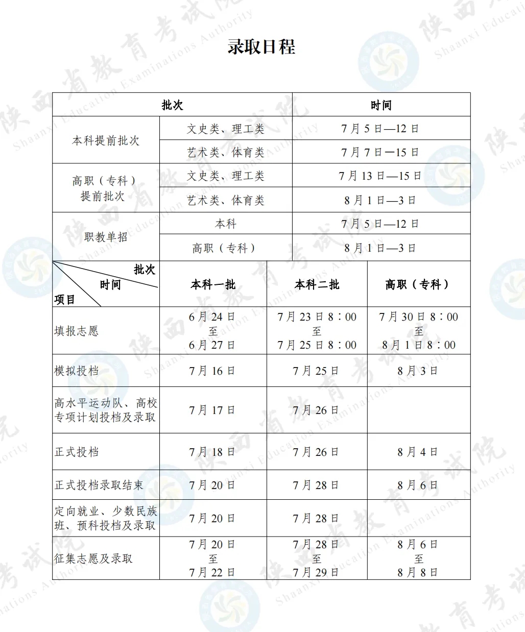 2024年陜西省高考錄取于今天正式啟動(dòng)。今年我省高考錄取日程安排如下: