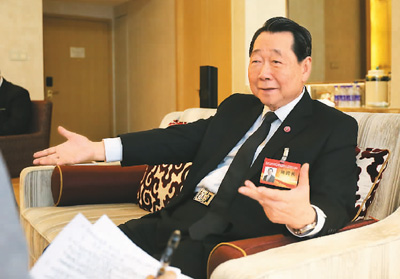 | 圖為謝國民接受本報記者采訪。 |