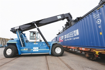 | 中國國家發(fā)展改革委主任何立峰12月22日說,我國以“一帶一路”建設為重點,開放型經(jīng)濟新體制逐步健全。中歐班列累計開行近7000列,市場化運營水平不斷提升。圖為2017年6月30日,在比利時澤布魯日港,工作人員將中歐班列沃爾沃汽車專列的一個集裝箱卸貨。從中國大慶出發(fā)經(jīng)過20多天運行,運載著123輛沃爾沃S90汽車的中歐鐵路首趟汽車專列6月30日順利抵達比利時澤布魯日港,標志著“中國智造”的豪華汽車首次以鐵路專列形式銷往歐洲市場,同時也標志著中比兩國在“一帶一路”建設框架下的合作邁出了新步伐。 |