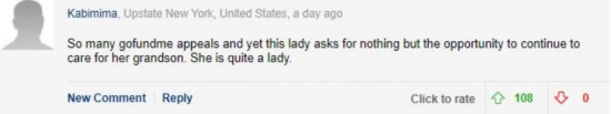 美國紐約的網(wǎng)友Kabimima:“眾籌平臺GoFundMe上有各種訴求,而這位女士卻沒有要求任何東西,只是想要能夠繼續(xù)送她的孫子上學(xué)。她真是了不起!