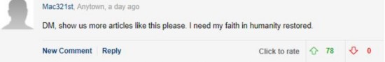 網(wǎng)友Mac321st:“請多寫些這樣的報道。他們的故事讓我重拾對人性的信心。”