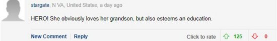 美國弗吉尼亞州的stargate說:“她真是個英雄。她關(guān)愛自己的孫子,而且了解教育的重要性。”(天驪)