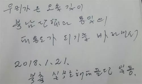 21日,朝鮮三池淵管弦樂團(tuán)團(tuán)長(zhǎng)玄松月一行前往韓國(guó),為朝鮮藝術(shù)團(tuán)冬奧會(huì)期間赴韓演出提前“踩點(diǎn)”。當(dāng)晚朝方人員用過晚餐后,玄松月在酒店留言簿寫了一句話:“希望我們走過的羊腸小道,可以成為北南團(tuán)結(jié)和統(tǒng)一的大路”。署名為“朝方實(shí)務(wù)了解代表團(tuán)全體”。雖然內(nèi)容簡(jiǎn)短,卻引發(fā)了韓國(guó)輿論的猜測(cè)。