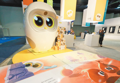 | 在2018年拉斯維加斯消費(fèi)電子展上,中國(guó)物靈科技公司展示可為兒童朗讀繪本的機(jī)器人Luka。 |