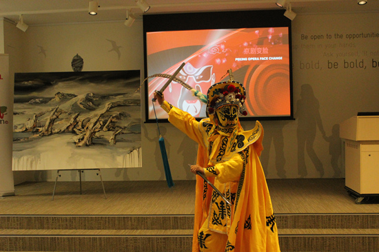 現(xiàn)場表演國粹藝術京劇變臉(攝影 盛楚宜)