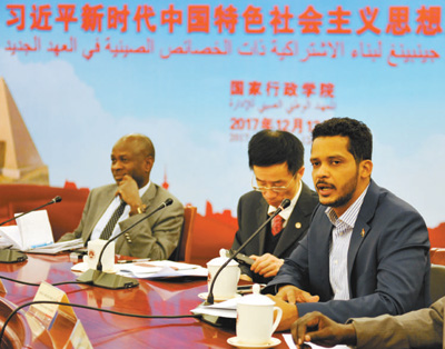 習近平新時代中國特色社會主義思想、人類命運共同體、反腐斗爭、精準扶貧、“一帶一路”……2017年歲末,20位蘇丹政府部級官員來到中國參加國家行政學院的培訓交流。黨的十九大規(guī)劃了中國從現(xiàn)在到本世紀中葉的發(fā)展藍圖,宣示了中方愿同各方推動構(gòu)建人類命運共同體的真誠愿望。蘇丹政府決策者們希望更加深入地理解中國和中國共產(chǎn)黨,學習借鑒中國經(jīng)驗和中國智慧,解讀中國共產(chǎn)黨的“執(zhí)政密碼”