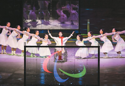 3月18日,2018年平昌冬殘奧會(huì)閉幕式在韓國(guó)平昌奧林匹克體育場(chǎng)舉行。閉幕式北京文藝表演上,現(xiàn)場(chǎng)大屏幕播放了北京2022年冬殘奧會(huì)會(huì)徽“飛躍”短片,集中展現(xiàn)了殘疾人運(yùn)動(dòng)員以堅(jiān)強(qiáng)的意志作為精神的翅膀,在冬殘奧賽場(chǎng)上放飛青春夢(mèng)想。伴隨著主題歌《我要飛》,中國(guó)殘疾人藝術(shù)團(tuán)的聽(tīng)障演員們奉獻(xiàn)了一場(chǎng)精彩表演。