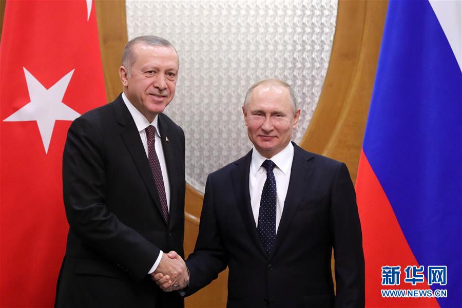 2月14日,在俄羅斯索契,俄羅斯總統(tǒng)普京(右)會(huì)見(jiàn)土耳其總統(tǒng)埃爾多安。 新華社/衛(wèi)星社