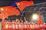 圖為日前在阿拉伯聯(lián)合酋長國舉行的第44屆世界技能大賽開幕式上,人們揮舞著中國國旗歡迎中國代表團入場。