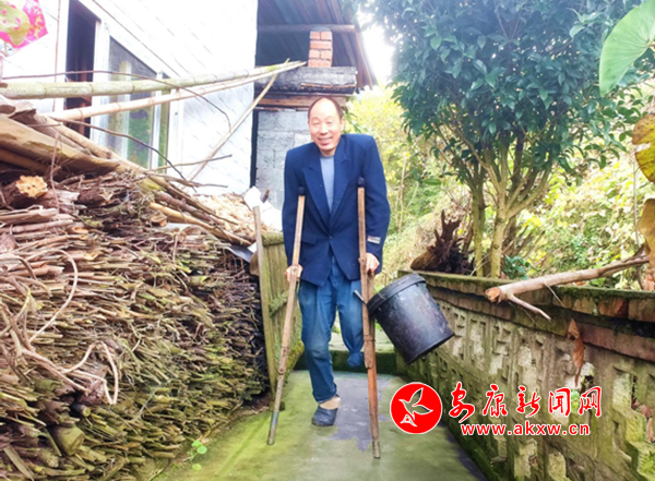 本網(wǎng)訊 (通訊員 商曼 劉靜)立冬節(jié)氣到來,氣溫逐漸下降。早晨還來不及收拾,戴西春便拄著拐杖,拌豬食、喂豬仔,動(dòng)作嫻熟?吹轿覀儊恚B忙單腿跳著進(jìn)屋拿板凳,招呼我們坐,滿臉笑容。