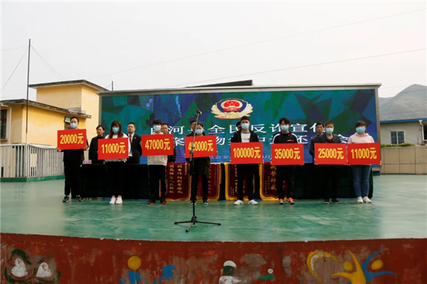 4月13日上午,白河縣“全民反詐”宣傳暨涉案財(cái)物集中返還大會(huì)在縣體育場(chǎng)舉行。縣委常委、政法委書記余盛武,縣政府副縣長(zhǎng)、公安局黨委書記、局長(zhǎng)譚簡(jiǎn)出席活動(dòng)?h委政法委、縣法院、縣檢察院、縣司法局、城關(guān)鎮(zhèn)政府有關(guān)領(lǐng)導(dǎo),城關(guān)鎮(zhèn)清風(fēng)社區(qū)、橋兒溝社區(qū)、獅子山社區(qū)、河街社區(qū)的工作人員及群眾代表,公安干警等200余人參加了活動(dòng),白河縣公安局近期破案并追回的60余萬(wàn)元涉案現(xiàn)金現(xiàn)場(chǎng)返還給受害群眾。