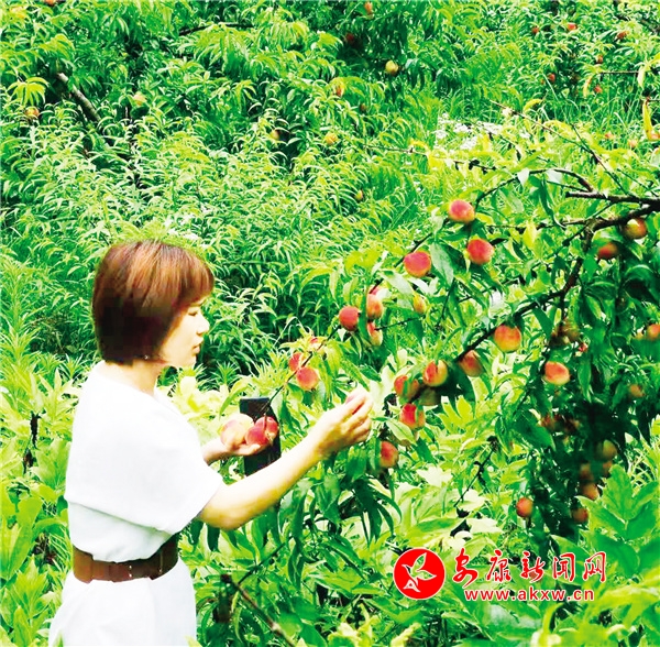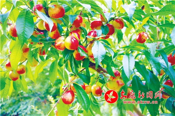 桃園主人向我們介紹,桃園里有十幾個品種的桃子,從五月下旬開始,一直到八月中秋陸續(xù)成熟。目前,油桃正值采摘期,已采摘5000余公斤,果園里黃桃、水蜜桃也已成熟,預計年產(chǎn)量1.5萬公斤左右,這也將帶來一筆不小的收入。