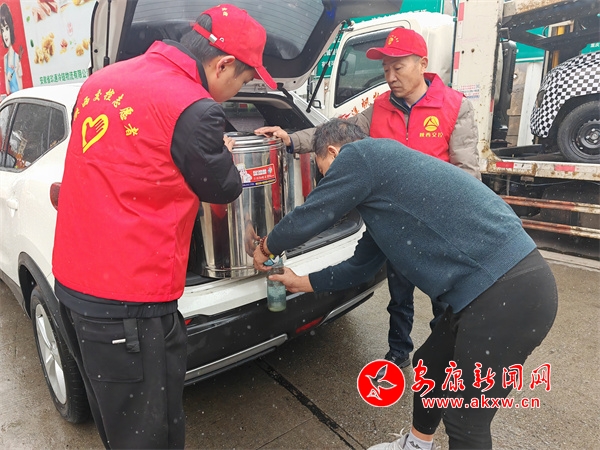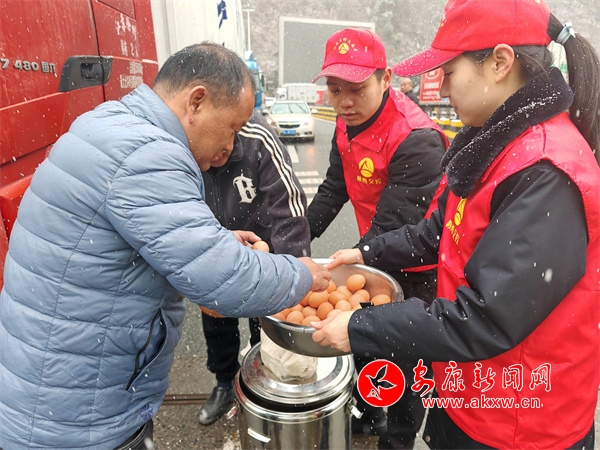 2月21日上午,降雪導(dǎo)致十天高速道路封閉,部分司機(jī)和乘客滯留在白河服務(wù)區(qū),陜西交控集團(tuán)白泉分公司白河管理所組織青年志愿者為滯留司乘送去饅頭、雞蛋、姜湯等食物,讓滯留人員感受到了溫暖。(通訊員 張丹) eQt安康新聞網(wǎng)
