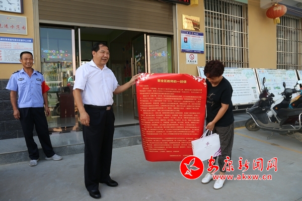 安康新聞網(wǎng)訊(通訊員 覃濤)第34個(gè)教師節(jié)來(lái)臨之際,為營(yíng)造莊重喜慶、尊師重教的節(jié)日氛圍,激發(fā)教師員工的職業(yè)榮譽(yù)感和神圣使命感,按照安康高新區(qū)管委會(huì)辦公室統(tǒng)一安排,9月7日,安康高新分局領(lǐng)導(dǎo)帶領(lǐng)信訪維穩(wěn)部、教體局、公安局等部門(mén)同志深入轄區(qū)中小學(xué)校、幼兒園,向堅(jiān)守在教育一線默默耕耘的教職員工送去節(jié)日慰問(wèn)和祝福。