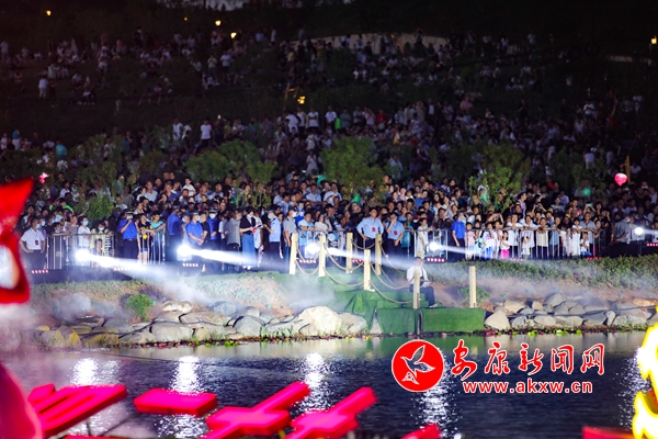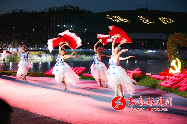 晚會在嘹亮激昂的獨唱《東方紅》中拉開序幕,緊接著,磅礴大氣的歌舞串燒《我和我的祖國》《萬疆》《愛我中華》,如詩如畫的水上表演《南湖紅船》《江南水鄉(xiāng)》《滾滾長江東逝水》,動力澎湃的RAP時尚秀《門戶新安康》,美輪美奐歌舞表演《我的深情為你守候》《為祖國干杯》《送你一個長安》《我愛你,中國》《領航》等節(jié)目相繼登臺表演,與此同時,絢麗多彩的燈光秀和仙氣飄飄的霧森特效穿插其中,不斷將演出推向高潮。最后,整場演出在大合唱《沒有共產(chǎn)黨就沒有新中國》的歌聲中圓滿落下帷幕。