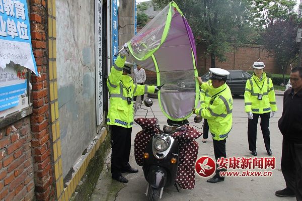 安康新聞網(wǎng)訊(通訊員 胡智洵)為凈化道路交通環(huán)境,消除各類交通安全隱患,響應(yīng)市交警支隊關(guān)于加強整治摩托車、電動車、三輪車非法加裝遮陽傘文件精神要求。5月……