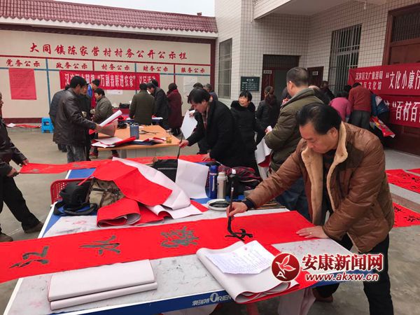 安康新聞網(wǎng)訊(通訊員 劉瀟 楊峰)1月8日,大同鎮(zhèn)陳家營(yíng)村熱鬧非凡。2017年“萬(wàn)副春聯(lián)進(jìn)農(nóng)家”活動(dòng)在這里舉行,在寒冬臘月里為全鎮(zhèn)人民帶來(lái)了濃濃暖意。春聯(lián)書(shū)寫(xiě)……