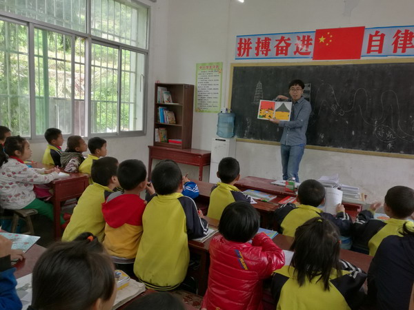 愛心人士卸完圖書后,走進(jìn)教室與孩子們互動(dòng),以閱讀課的形式一起分享書中的快樂。