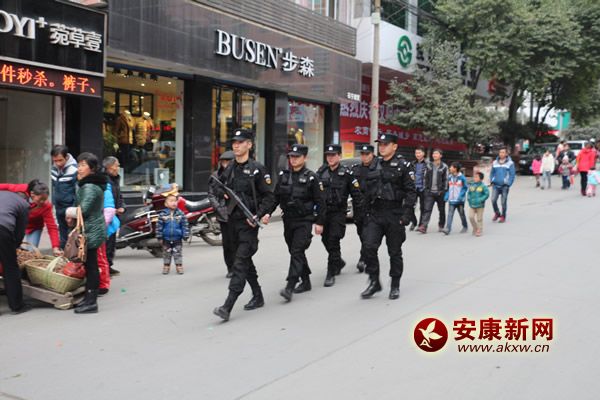 漢陰警方加強(qiáng)“元旦”期間城區(qū)武裝巡邏