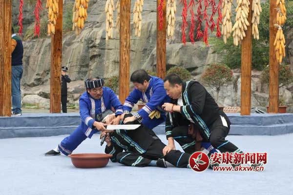 嵐皋“巴人山歌”、“攀巖牛人”一一登場(chǎng)。舞臺(tái)上信手拈來(lái)的情歌對(duì)唱、舞臺(tái)后山上驚險(xiǎn)的攀巖表演加上舞臺(tái)前帶有濃厚鄉(xiāng)土氣息地劃拳飲酒聲,巴山、巴人的“忠勇剛烈”精神內(nèi)涵,被展現(xiàn)得淋漓盡致。