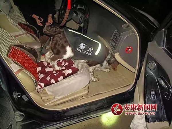 “吉祥”對王某的車輛進行搜查,車座夾縫內(nèi)、后備箱隱蔽處……“吉祥”在車上三嗅兩聞之后對駕駛室儲物格左側(cè)不停的抓刨,尾巴左右高頻率的搖擺,并時不時的抬頭看著訓犬員,顯得特別興奮。訓犬員迅速上前檢查,果然發(fā)現(xiàn)了儲物格與前排座椅夾縫隱蔽處的一小包冰毒。民警當即帶王某做了尿檢,結(jié)果呈陽性,在證據(jù)面前,王某對其吸食冰毒、在車內(nèi)藏冰毒的違法事實供認不諱。目前,違法人員王某已被依法行政拘留。