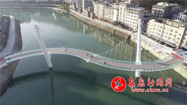 無人機拍攝的剛建成的嵐皋縣城嵐河人行橋。陳延安/攝