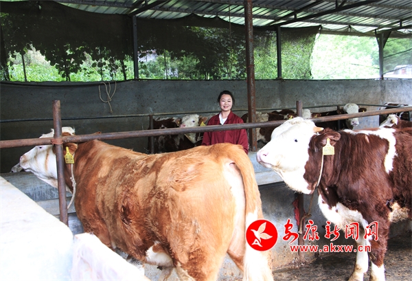 陳景田吃苦耐勞,熱情爽朗。19歲時,她離開家鄉(xiāng)外出打工,學(xué)過理發(fā),洗過碗,端過盤子,之后又回到嵐皋縣城賣床上用品。網(wǎng)購興起后,產(chǎn)品不好賣了。2014年初,陳景田和丈夫一合計,干脆拿著做生意攢下的幾十萬開始修圈舍、修路、架電、修廠房,買下村民的12頭牛,正式開啟了她的“牛姐征程”。