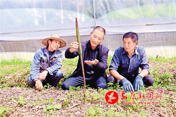 原來(lái),這兩位是鄰村的村民,利用雨天農(nóng)閑時(shí)間,專(zhuān)程來(lái)向他請(qǐng)教魔芋追肥和病蟲(chóng)防治技術(shù),早上到家問(wèn)過(guò)王永成的妻子后,一路找到了地頭。