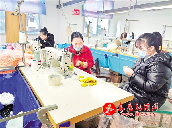 在四季鎮(zhèn)毛絨玩具廠,十余名工人嫻熟地操作著機(jī)器。“我每天把孩子送到學(xué)校后就來這上班,中午在政府食堂吃一頓飯,下午又去接孩子放學(xué),把家庭照顧了,還能掙點(diǎn)零花錢。”工人李丹丹說。