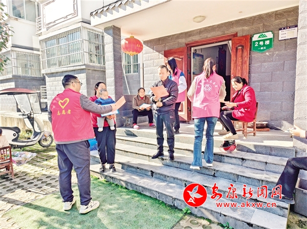 黨員干部化身志愿者入戶宣傳平安建設(shè)。林勝東 攝