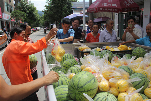 “這瓜多少錢一斤?”“不好意思,這是送給環(huán)衛(wèi)工人們的,不賣!7月18日,嵐皋縣眾達農(nóng)業(yè)園區(qū)工作人員載著一車新鮮的本地瓜果,來到建設路縣環(huán)衛(wèi)保潔公司門口……