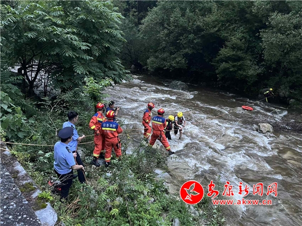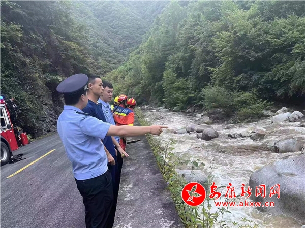 經(jīng)了解,兩名被困旅客駕車來到寧陜縣游玩,不了解當(dāng)?shù)靥鞖馇闆r及水位水勢(shì),因暴雨導(dǎo)致河流漲水無法返回,該處手機(jī)無信號(hào)只能向過路人呼喊求救,請(qǐng)求幫助聯(lián)系110,游客向公安民警和消防大隊(duì)人員感謝道:“剛剛遇到危險(xiǎn)情況時(shí),我第一時(shí)間就想到了110,公安、消防永遠(yuǎn)是人民群眾的守護(hù)神。”