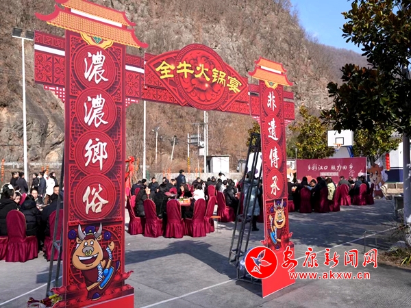 活動現(xiàn)場吸引了來自本地、西安的游客,大家熱鬧地逛秦嶺山貨大集,選擇江口手工點心、木耳等寧陜山珍,與孩子一起滑雪嬉戲,融入到童話般的冰雪世界。象征著好運、財氣的牛頭出場,活動正式拉開序幕,上腦、吊龍、黃瓜條、金錢腱、牛肚、牛百葉、牛舌、牛尾湯等一道道以牛肉為主的特色菜品展現(xiàn)在游客面前,大家紛紛慶祝和共享這美好時刻。