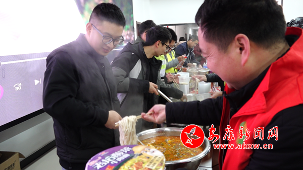 在城關鎮(zhèn)朱家嘴收費站,收費站秒變“愛心驛站”,當?shù)馗刹恳约爸驹刚邔羲境巳藛T引導至收費所進行取暖休息,向滯留司乘人員耐心解釋交通管制原因,安撫司乘情緒,并送去熱水、方便面、火腿腸等方便食物,暖心提供休息、充電等延伸服務。