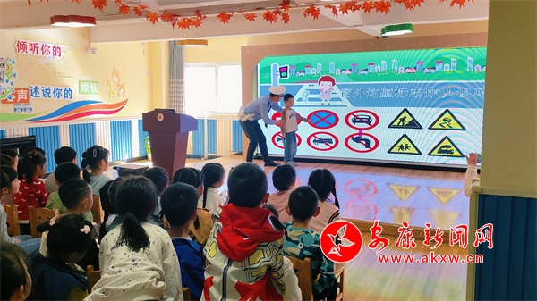活動中,民警用生動有趣的語言為小朋友講解了安全行走、安全過馬路、安全乘車以及正確佩戴安全頭盔、系好安全帶、認(rèn)識交通標(biāo)志標(biāo)識等基本的交通安全知識。同時,通過現(xiàn)場互動、你問我答的方式,向?qū)W生們講解闖紅燈、橫穿馬路、多人騎乘摩托車等不文明交通行為的危害。最后,民警現(xiàn)場教學(xué)交通指揮手勢,加深小朋友對交通安全常識的理解與記憶,引導(dǎo)他們從小樹立安全出行的理念,增強(qiáng)安全意識,自覺遵守交通法規(guī)。