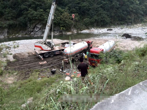 8月27日,一輛液化氣重型罐車由西安駛往安康,途徑210國道寧陜縣江口鎮(zhèn)內(nèi)時,由于雨天路滑在一急轉(zhuǎn)彎處發(fā)生意外,車翻滾入路外的河灘里,車輛受損乘員嚴重受傷,……