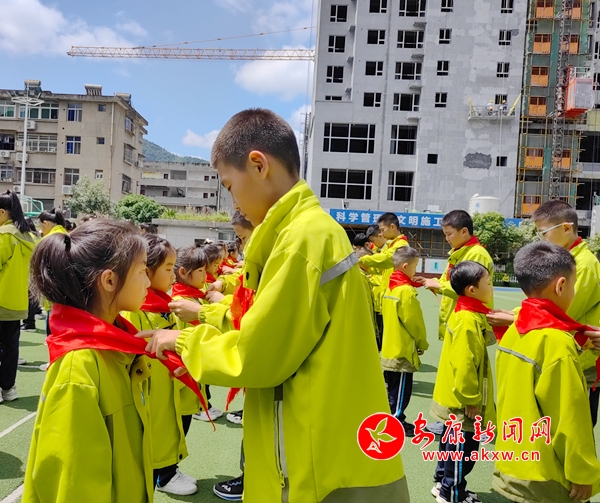 5月23日上午,平利縣城關小學舉行“永遠跟黨走 爭做好隊員”新隊員入隊儀式,2022級84名學生光榮地加入了中國少年先鋒隊。五年級少先隊員為新隊員佩戴紅領巾,帶……