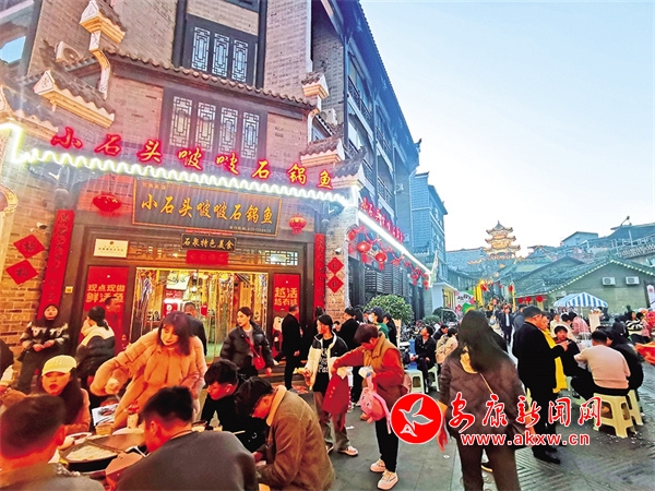 走進(jìn)石泉縣,琳瑯滿目的美味小吃、地方特產(chǎn)、文創(chuàng)手作,豐富多彩的春節(jié)活動讓人流連忘返,助推文旅商貿(mào)實(shí)現(xiàn)深度融合發(fā)展。年味濃、人氣足、消費(fèi)旺,共同繪就了春節(jié)消費(fèi)市場欣欣向榮的圖景。春節(jié)假日期間,石泉縣文化旅游市場火爆,全縣累計接待游客41.51萬人次,實(shí)現(xiàn)旅游綜合收入2.74億元,按可比口徑較2023年分別增長54.88%、103.78%;全縣社會消費(fèi)品零售總額同比增長10.66%,春節(jié)市場消費(fèi)活力十足。