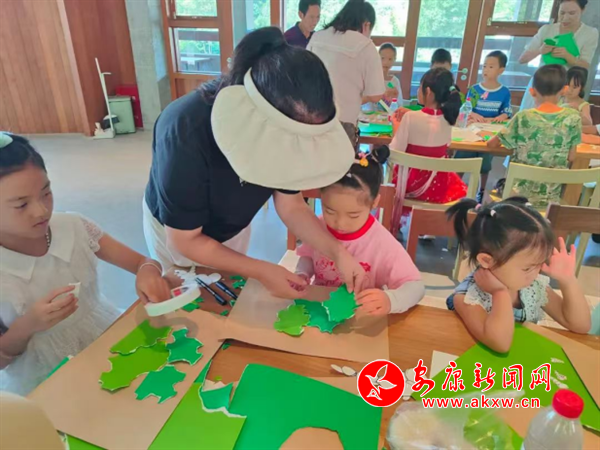 溫馨的活動室里,“愛心媽媽”們帶著滿滿的愛與關(guān)懷,與一群可愛的孩子們相聚在一起,孩子們一雙雙充滿期待的眼睛明亮而好奇地緊緊盯著“愛心媽媽”們,“愛心媽媽”溫柔地微笑著,拿起準備好的彩紙、剪刀、膠水等材料,耐心地向孩子們講解今天的手工制作——蠶寶寶吃桑葉。從如何繪畫蠶寶寶,到怎樣拼剪出立體感的桑葉,“愛心媽媽”們一步步細致地示范著,孩子們?nèi)褙炞⒌伛雎、模仿著,雖然有些孩子一開始還不太熟練,但“愛心媽媽”們始終耐心地在他們身邊,一遍又一遍地重復(fù)著動作,給予鼓勵和引導(dǎo)。漸漸地,孩子們的小手開始靈活起來,他們認真地繪畫、剪裁、粘貼著,不一會兒,一幅幅蠶寶寶吃桑葉的作品就出現(xiàn)在了他們的手中。孩子們看著自己親手創(chuàng)造的作品,臉上綻放出花朵般的笑容。