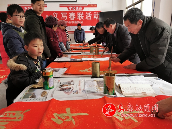 1月13日,鎮(zhèn)坪縣上竹鎮(zhèn)組織開展義寫春聯(lián)活動(dòng),為廣大群眾免費(fèi)贈(zèng)送春聯(lián);顒(dòng)現(xiàn)場(chǎng)熱鬧非凡,處處洋溢著濃濃的年味,書法家們揮毫潑墨,熱情地為群眾書寫著一副副春聯(lián),群眾們滿心歡喜的接過這些書法作品,臉上的笑容不自覺地流露出來。這些滿載著祝福的春聯(lián),帶著揮別豬年,喜迎鼠年,辭舊迎新的美好祝愿,為即將來臨的春節(jié)增添了濃濃的節(jié)日氣氛。 (通訊員 黃俊 文/圖)
